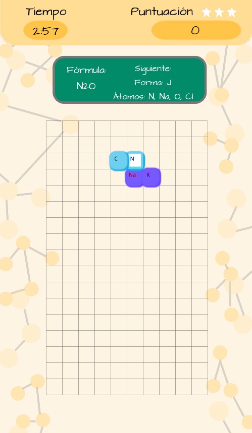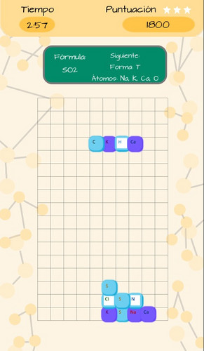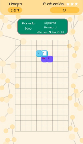 Un juego de puzzle donde piezas caen de arriba. Tiene principios de química molecular, donde los jugadores deben formar compuestos químicos específicos fusionando átomos.